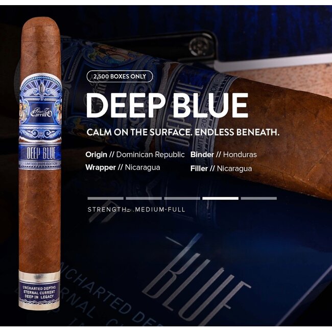 DEEP BLUE is the latest limited edition Wrapped in a flawless Nicaraguan Habano, it opens with dark earth and strength, then yields a quiet sweetness that shifts with every draw-subtle, complex, never fully surrendered.