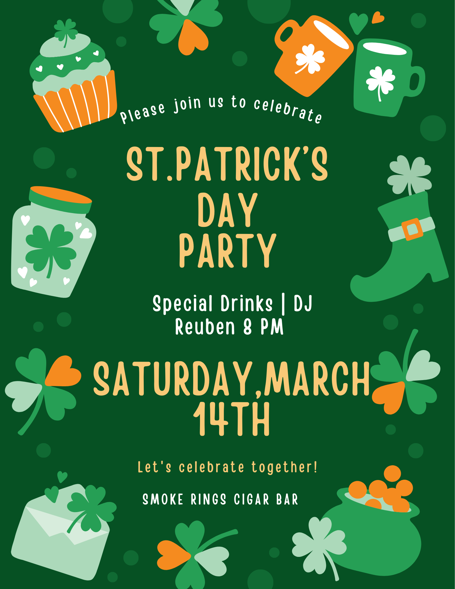 - St. Patty's Day Party - Saturday, March 14, 2026 @ Smoke Rings Cigar Bar