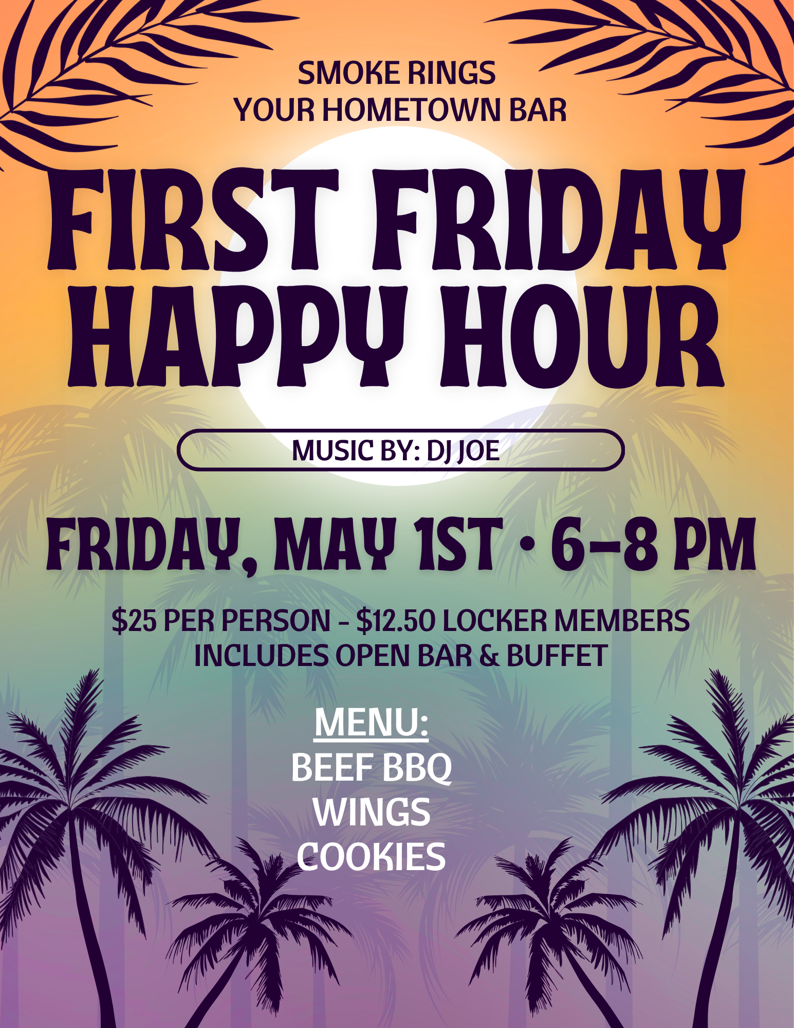 - First Friday Happy Hour: Friday, May 1sh from 6pm - 8pm @ Smoke Rings Cigar Bar