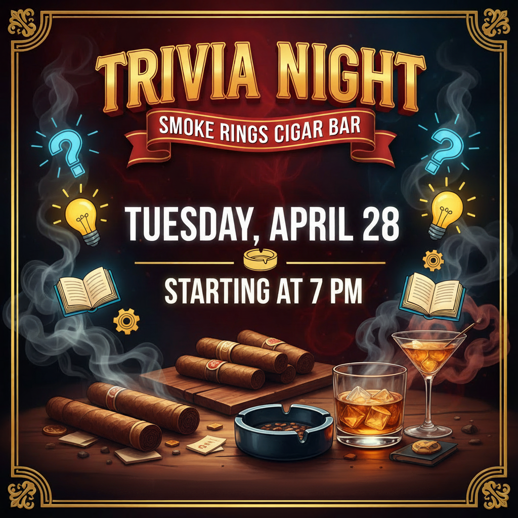 - Trivia Night: Tuesday, April 28th starting at 7pm @ Smoke Rings Cigar Bar