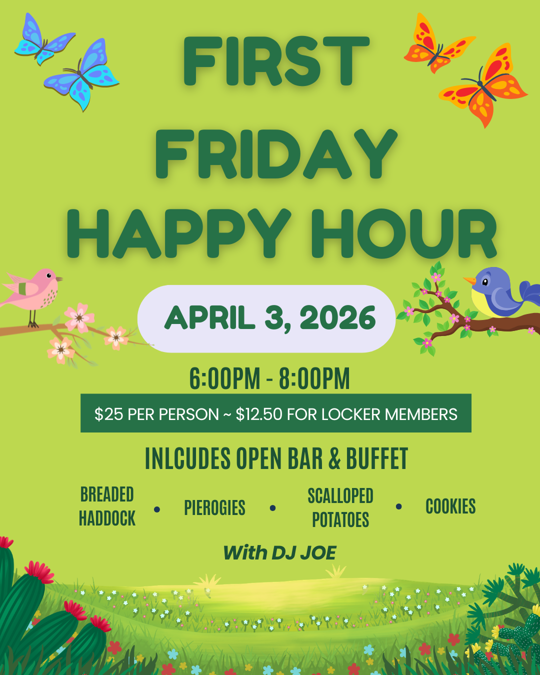 - FIRST FRIDAY HAPPY HOUR with DJ Joe - From 6pm - 8pm @ Smoke Rings Cigar Bar, enjoy open bar, unlimited buffet and great tunes for only $25.00 per person!