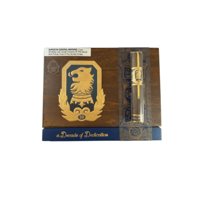 The Undercrown 10 Robusto is a full-strength, full-bodied anniversary premium cigar. Celebrating a Ìĉ۪Decade of DedicationÌĉÛÏ, it is a brand that was actually Ìĉ۪born on the Factory FloorÌĉÛÏ. The Undercrown 10 Robusto has an oily Mexican San Andres maduro wrapper that covers a USA Connecticut Broadleaf binder and long-filler leaves from Nicaragua. Fruity, earthy and woodsy notes are part of this cigar that has an underlying natural sweetness with an intense peppery sensation. The Undercrown 10 Robusto is "All Dekked Out" with a special ribbon, band, and foot band, all packaged up in a commemorative collectible box.